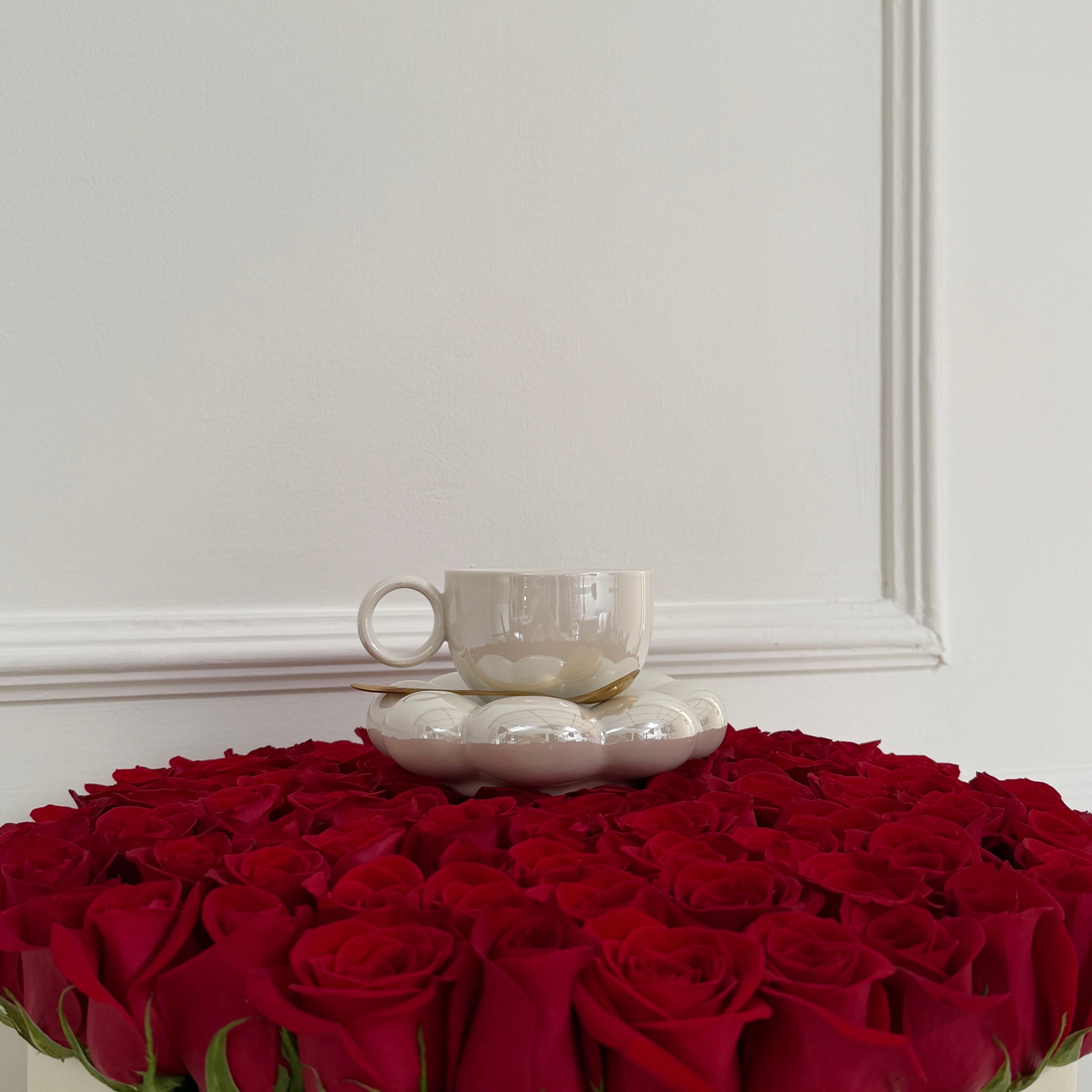 Opción de compra: Puedes elegir tu set individual que incluye plato & pocillo, o adicionarle nuestra cucharita d’Amour & empaque regalo.