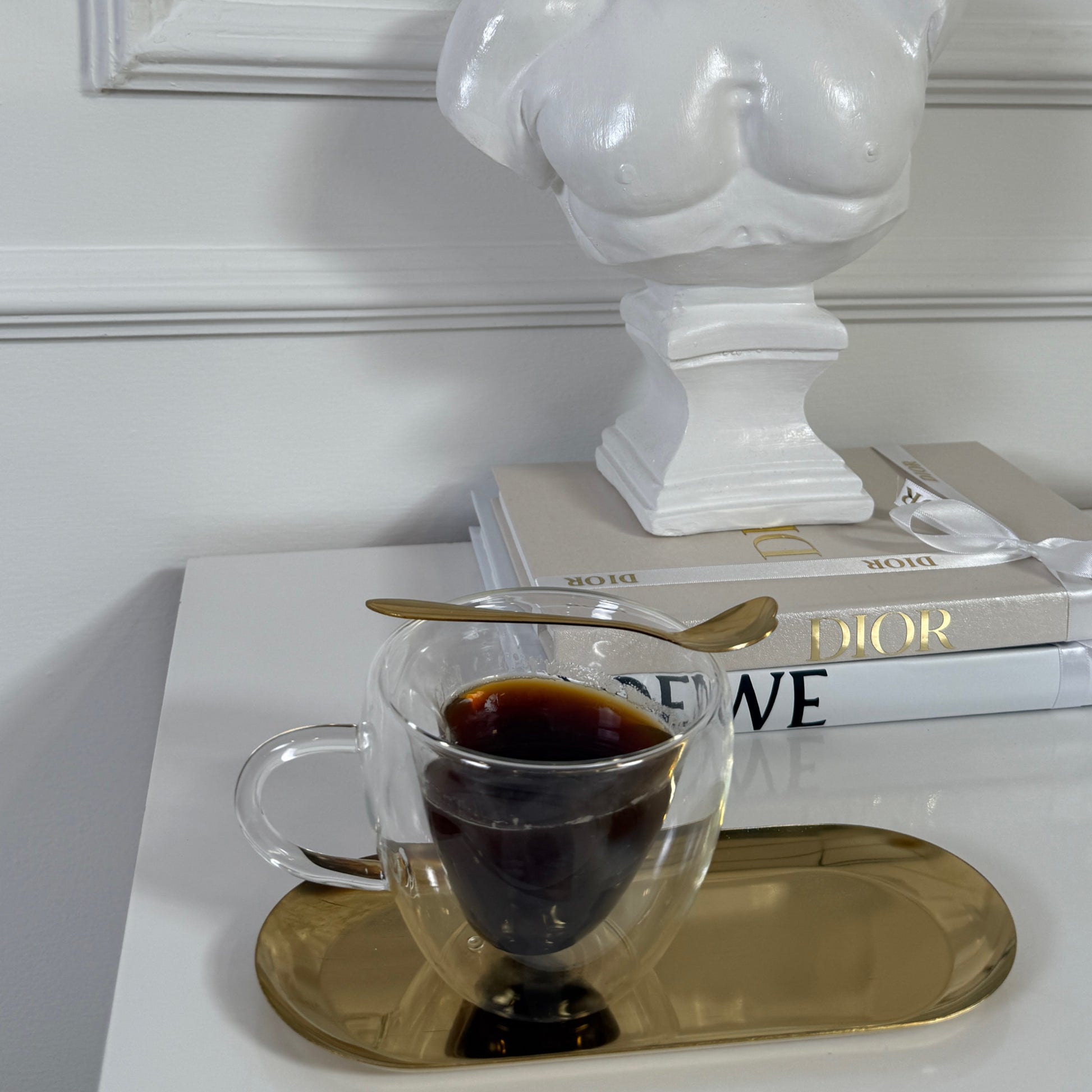 Nuestra Bandeja Dorée, es fabricada en acero inoxidable combina resistencia y estética, ideal para usar como elemento decorativo o como base para vasos, tazas u objetos pequeños.