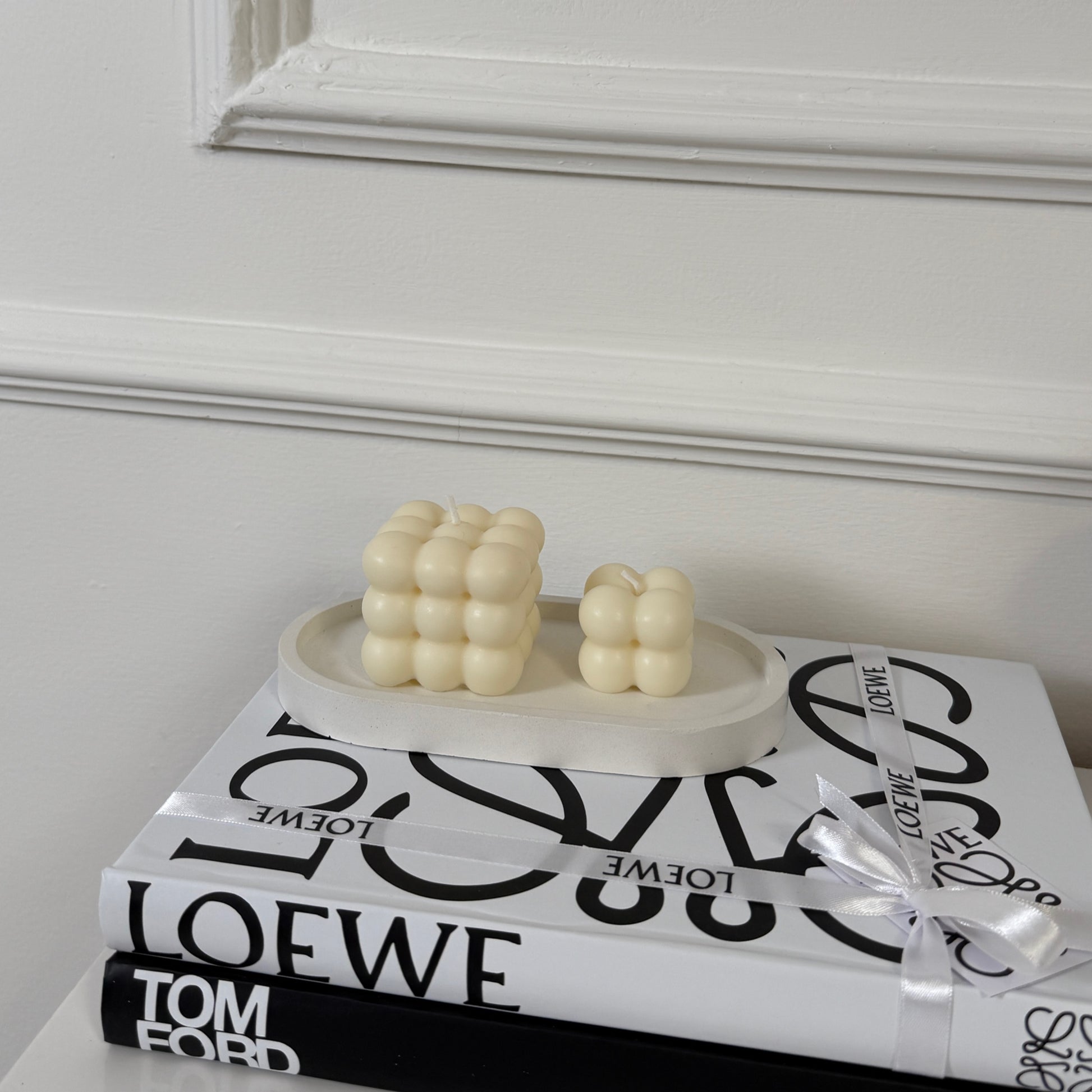 Nuestra Base Bloomia, es fabricada en yeso, combina una estética sobria y moderna con un uso versátil, funciona como elemento decorativo y como portavaso, protegiendo tus superficies con estilo.