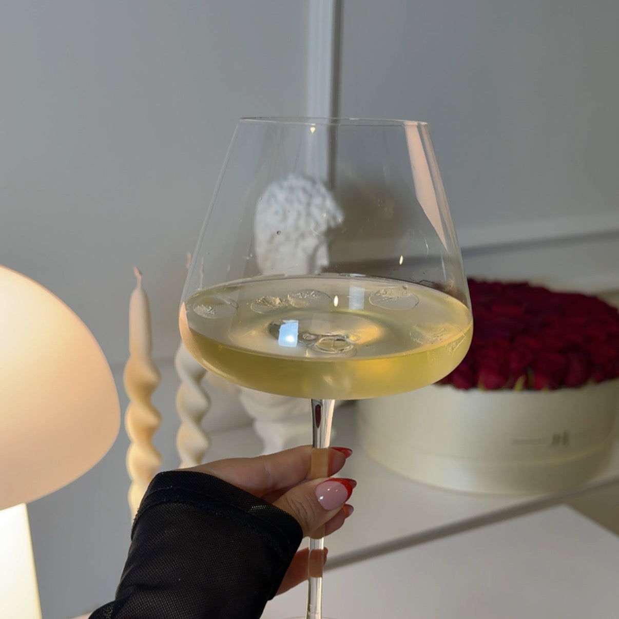 Nuestra Copa Cherie, destaca por su diseño equilibrado que ofrece una experiencia cómoda y refinada al sostenerla, ideal para vino, cocteles o bebidas especiales, es una pieza que combina funcionalidad y estética.