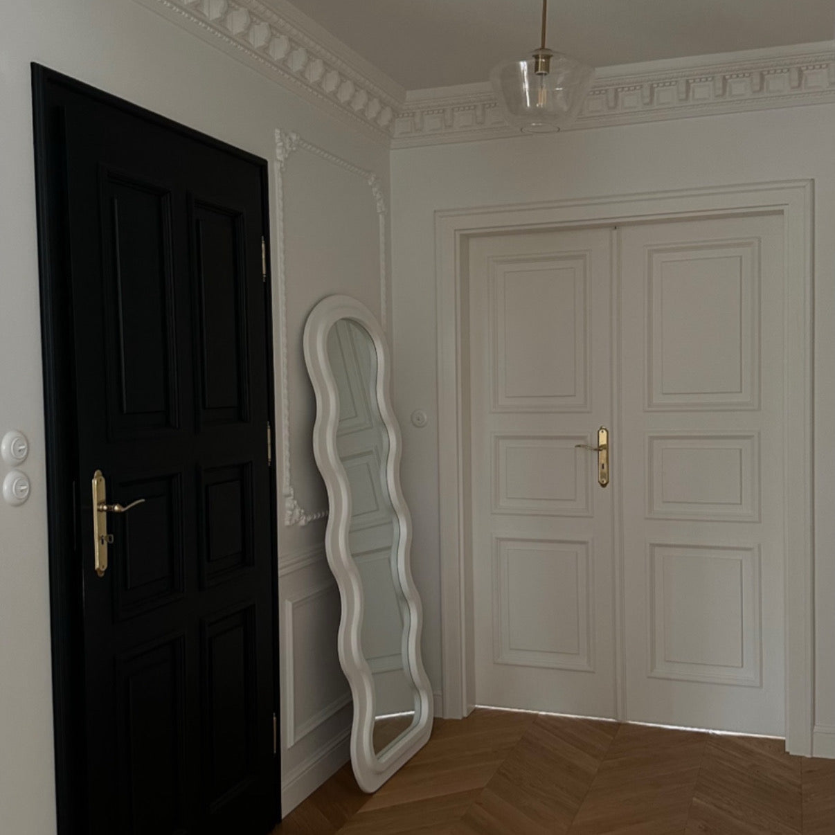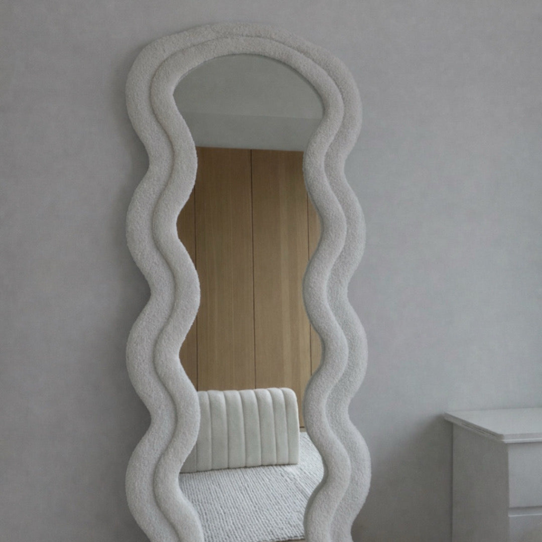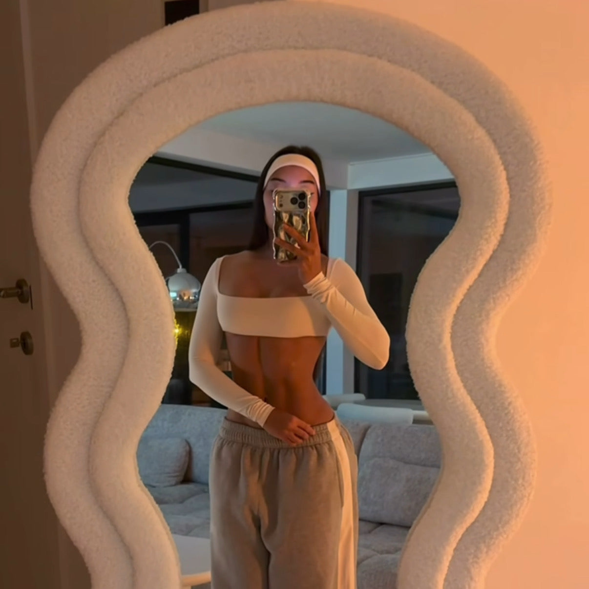 Nuestro Espejo Nube, puede usarse de pie, apoyado contra la pared o montado en la pared. fabricado en madera de alta calidad y cubierto de franela con una capa de amortiguación que proporciona protección anticolisión flexible de 360°.