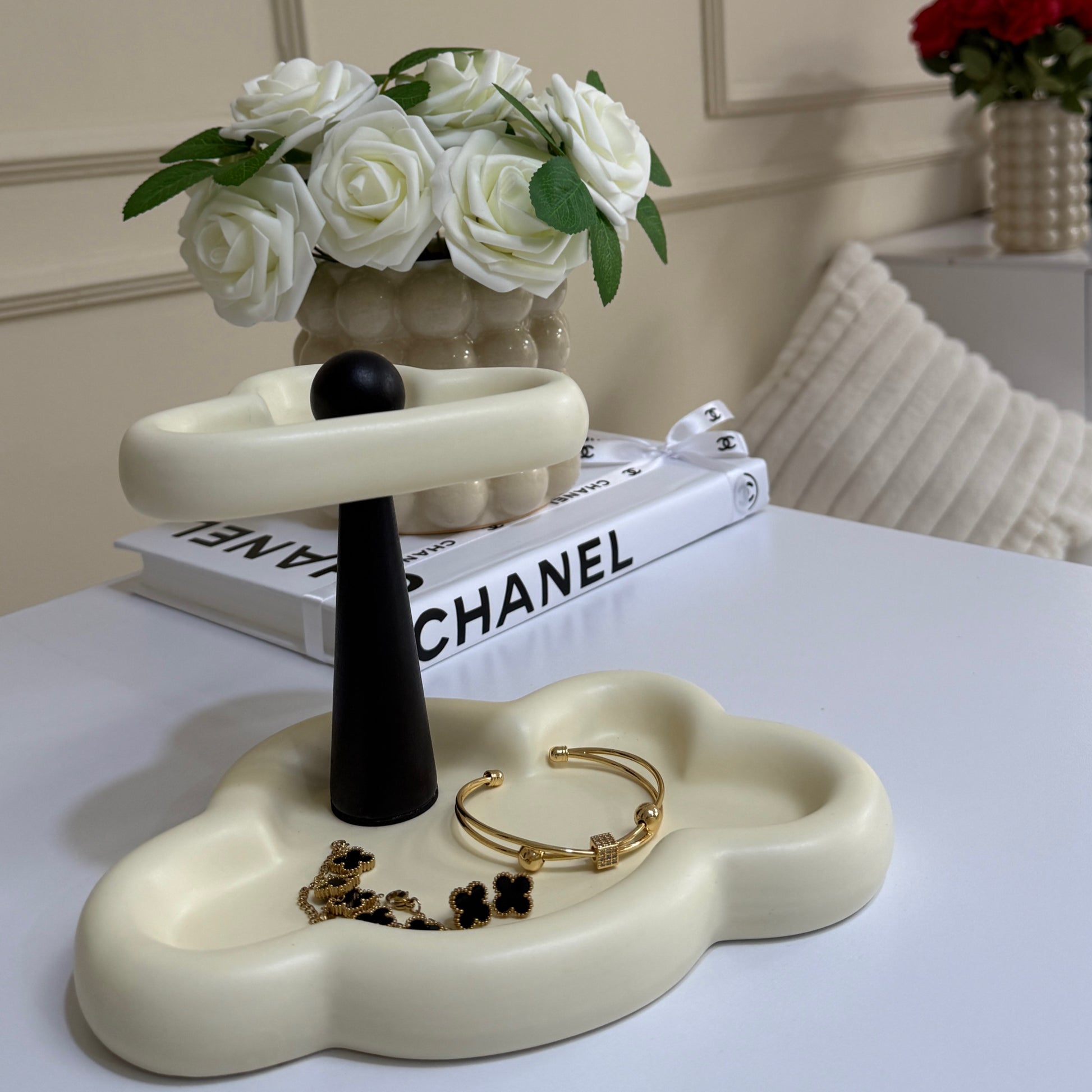 Nuestro Joyero Crème Vanille, es fabricado en cerámica con acabado premium, destaca por su diseño minimalista y acabado delicado, pensado para cuidar y organizar tus piezas favoritas con estilo, ideal para guardar anillos, aretes, collares delicados o pequeños accesorios, manteniéndolos siempre a la vista y protegidos.