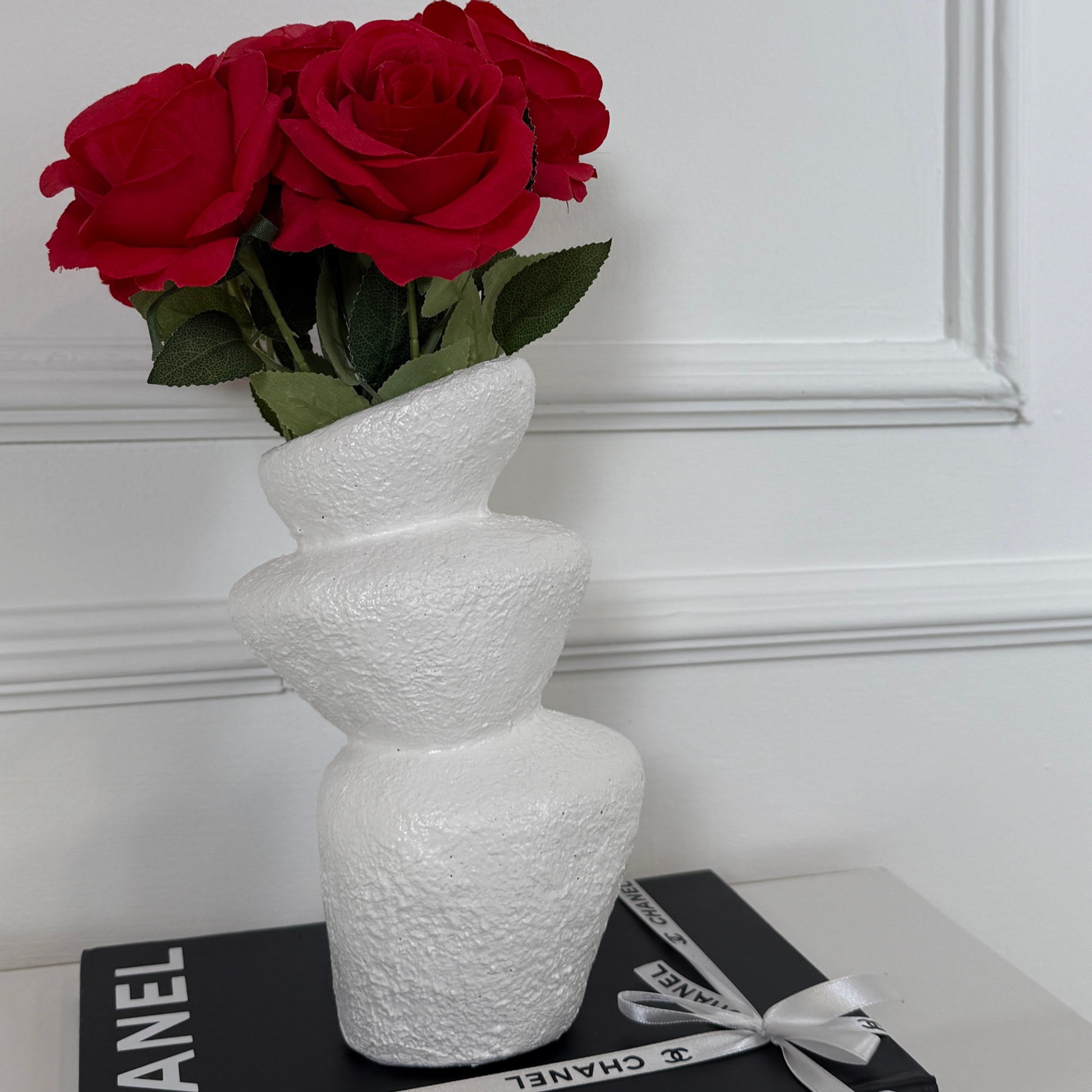 Nuestro Jarrón Ophelie, hecho a mano exclusivo únicamente en nuestra tienda, destaca por su diseño orgánico y textura artesanal. Al ser elaborado artesanalmente, no hay dos iguales: pequeñas variaciones que reflejan su carácter y autenticidad.