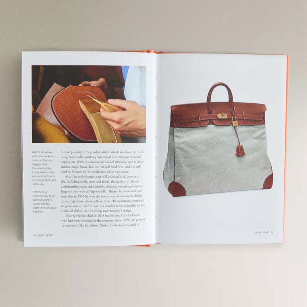 Libro de pasta dura que forma parte de una colección editorial exclusiva, con páginas en su interior que narran la historia, legado y evolución de la icónica casa HERMES. Escrito en inglés, combina textos curatoriales con fotografías que celebran la estética atemporal y la influencia de la marca en el mundo de la moda.