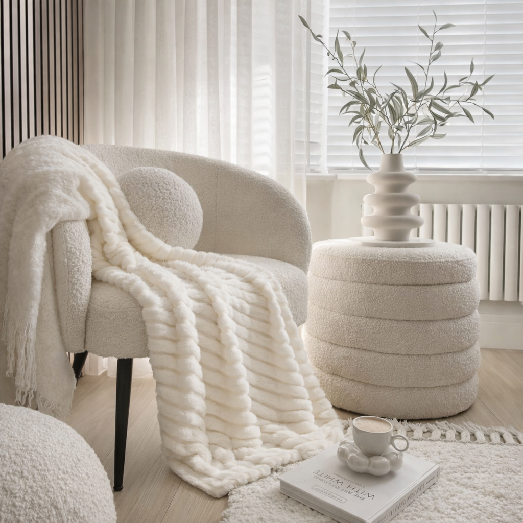 Nuestra Manta Cream Soft, minimalista, elegante y atemporal es el complemento perfecto para tu sofá, cama o rincón favorito.