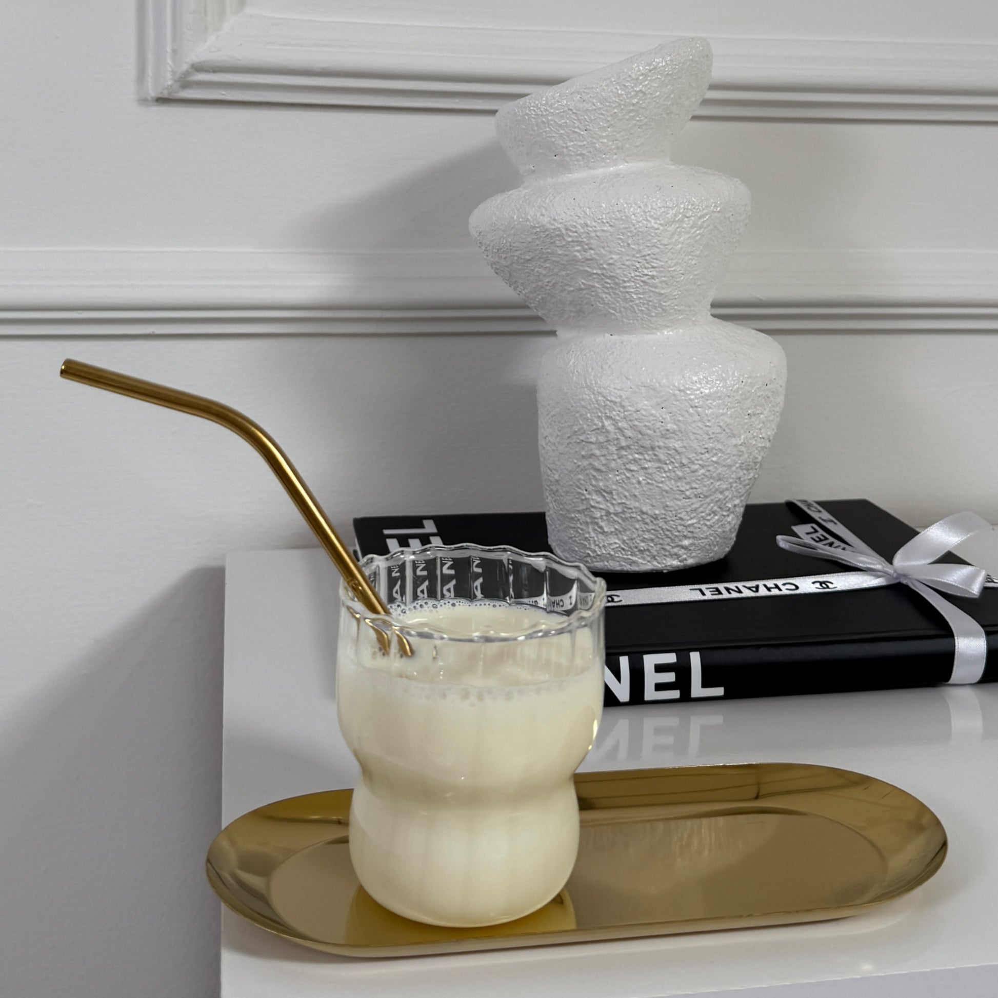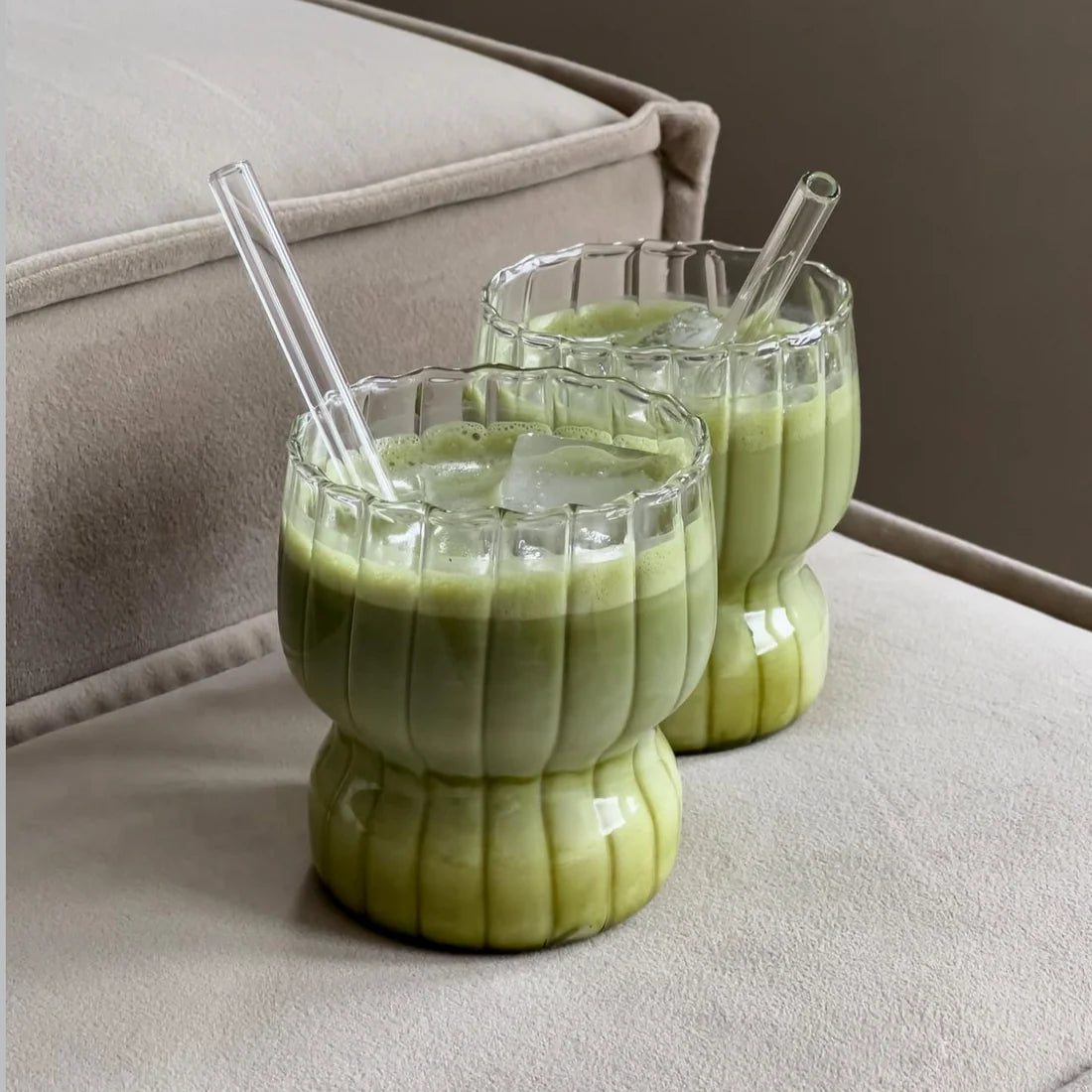 Nuestro Vaso Mattina, destaca por su silueta curva y su delicado acabado estriado, que aporta textura y un carácter único a cada pieza.